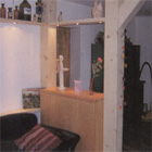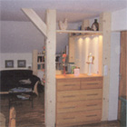 The example shows a solution to get some privacy and extra storage space into a large room. The hand-crafted cabinet is made from finished cherry wood. The columns are made from oil finished brushed ash. Illumination can be added in many different varieties.